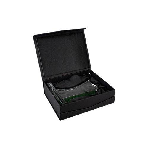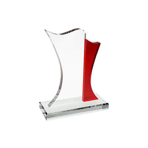 Deluxe Trofeo grande de Cristal modelo «Bauhaus» con aplicación de cristal-color. Presentación en caja de cartón forrado negro.