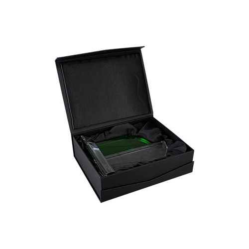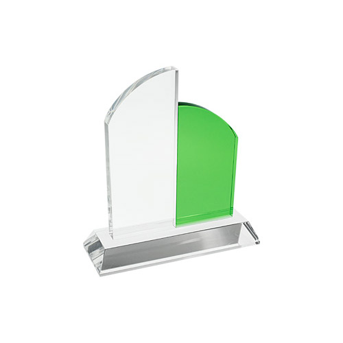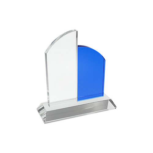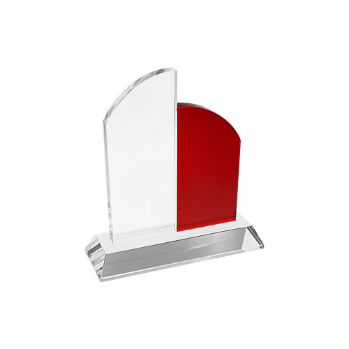 Deluxe Trofeo grande de Cristal modelo «Catedral» con aplicación de cristal-color. Presentación en caja de cartón forrado negro.
