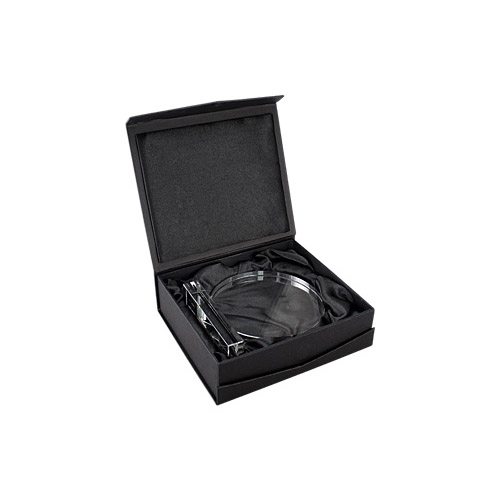 Trofeo de Cristal modelo «Circle» con base. Presentación en caja de cartón forrado negro.