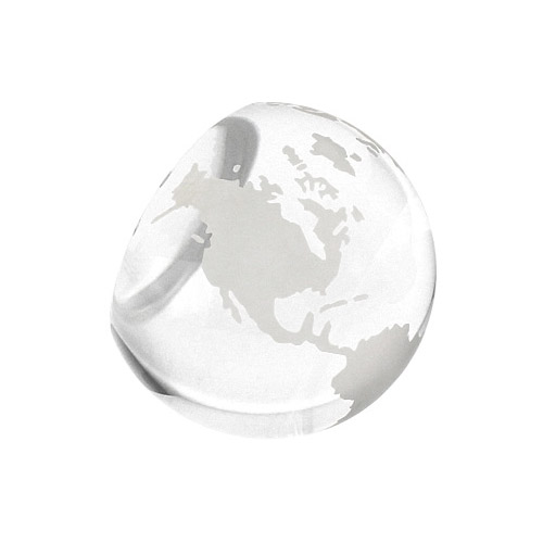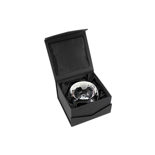 Trofeo de Cristal modelo «Planet» en forma de planeta con lado truncado. Presentación en caja de cartón forrado negro.