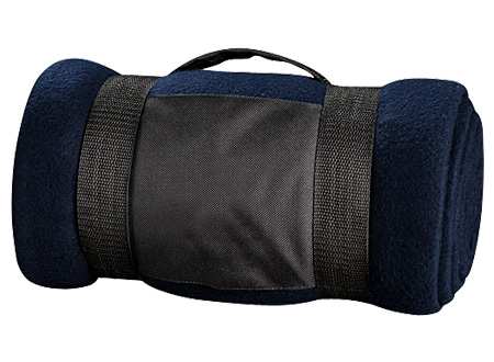 Manta de Polar Anti-peeling de 250 g/m2 con Costuras en todo el rededor, incluye bolsito de tela negra de transporte, con espacio para logo.